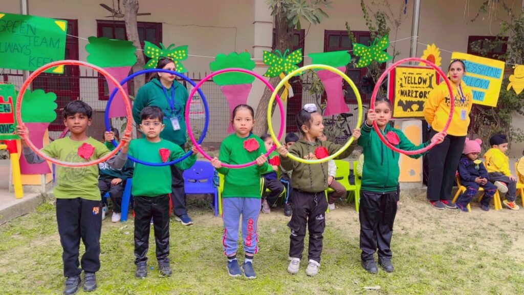 स्पोर्ट्स डे पर छोटे चैंपियन खूबसूरत कलर थीम में चमक रहे थे। विद्यालय के सभी छात्रों को ग्रूपस में बांटा गया और स्पोट्स डे पर बैलून रेस, टेडी बेयर रेस, कार रेस, फ्रूट रेस, बॉल कलेक्टिंग रेस, वेजिटेबल रेस, अल्फाबेट रेस, फ्रॉग जंप रेस, बॉल बैलेंसिंग रेस व हर्डल्स रेस करवाई गई। कार्यक्रम के अंत में नन्हे-मुन्ने बच्चों को मैडल देकर सनमानित भी किया गया। कुल मिलाकर आज का दिन छात्रों के लिए बहुत ही यादगार रहा।